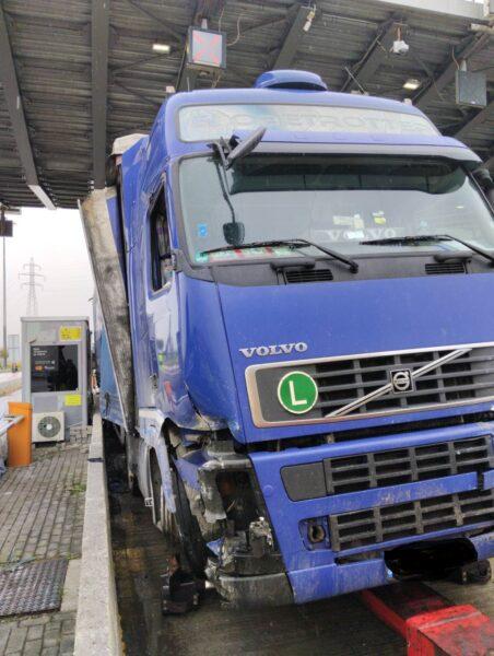 Περί τις 09:00 ο οδηγός της νταλίκας έπεσε πάνω στα διόδια στην Εγνατία Οδό, χτυπώντας και δυο προπορευόμενα οχήματα.