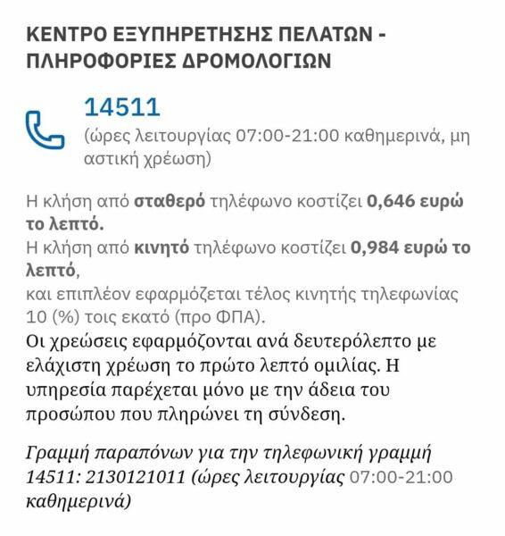 Τέλος, με δεδομένο ότι δεν υπάρχει ενημέρωση εντός του τρένου, οι επιβάτες – όπως αναφέρθηκε πιο πάνω – καλούν στο 14511, το οποίο είναι το τηλεφωνικό κέντρο της Hellenic Train. Όπως μπορεί να διαπιστώσει ο καθένας, για να μάθουν οι επιβάτες πότε θα μπορέσουν να φύγουν από την ακινητοποιημένη αμαξοστοιχία, θα πρέπει πρώτα να χρεωθούν για κάθε λεπτό που θα καλέσουν την εταιρεία.
