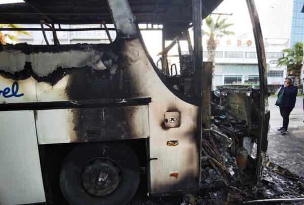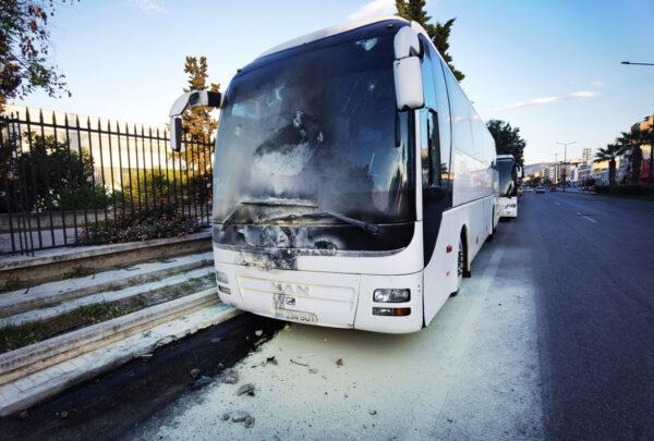 Οι νεαροί πέταξαν βόμβες μολότοφ σε τρία τουριστικά λεωφορεία που ήταν σταθμευμένα έξω από την Γεωπονική Σχολή με αποτέλεσμα το ένα να καεί ολοσχερώς ενώ τα άλλα δύο υπέστησαν υλικές ζημιές.