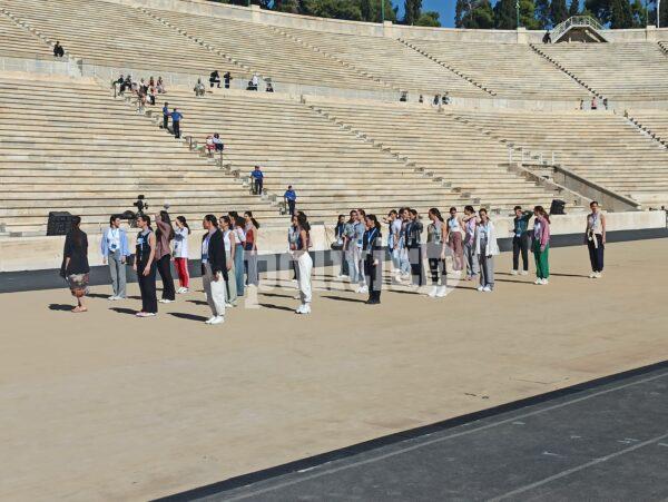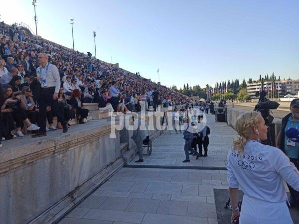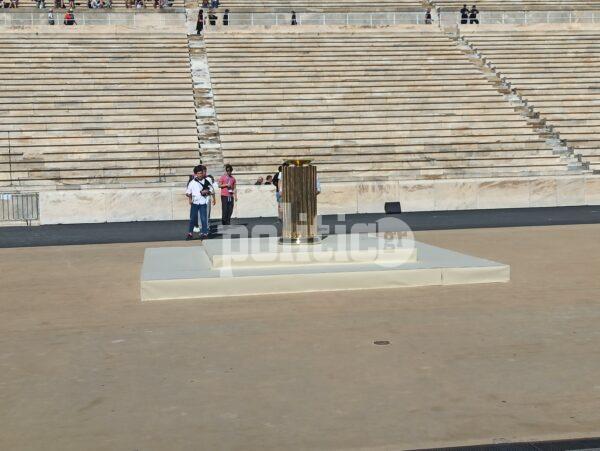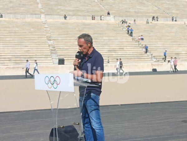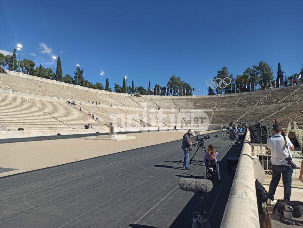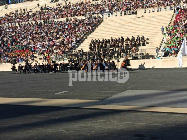 Στο Παναθηναϊκό Στάδιο πραγματοποιήθηκε η Τελετή Παράδοσης της Ολυμπιακής Φλόγας με τη Νάνα Μούσχουρη να έχει κεντρικό ρόλο και τον Νίκο Αλιάγα σε ρόλο παρουσιαστή.