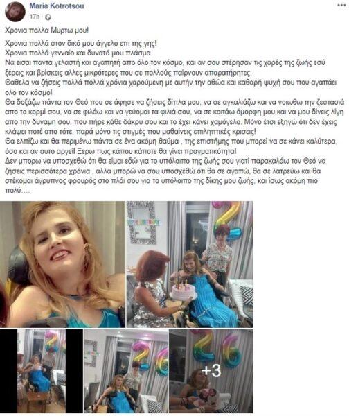 Συγκεκριμένα η Μυρτώ παρέα με την μητέρα της γιόρτασε τα 26α γενέθλια της με την μητέρα της να τονίζει ότι θα στέκεται άγρυπνος φρουρός στο πλάι της.