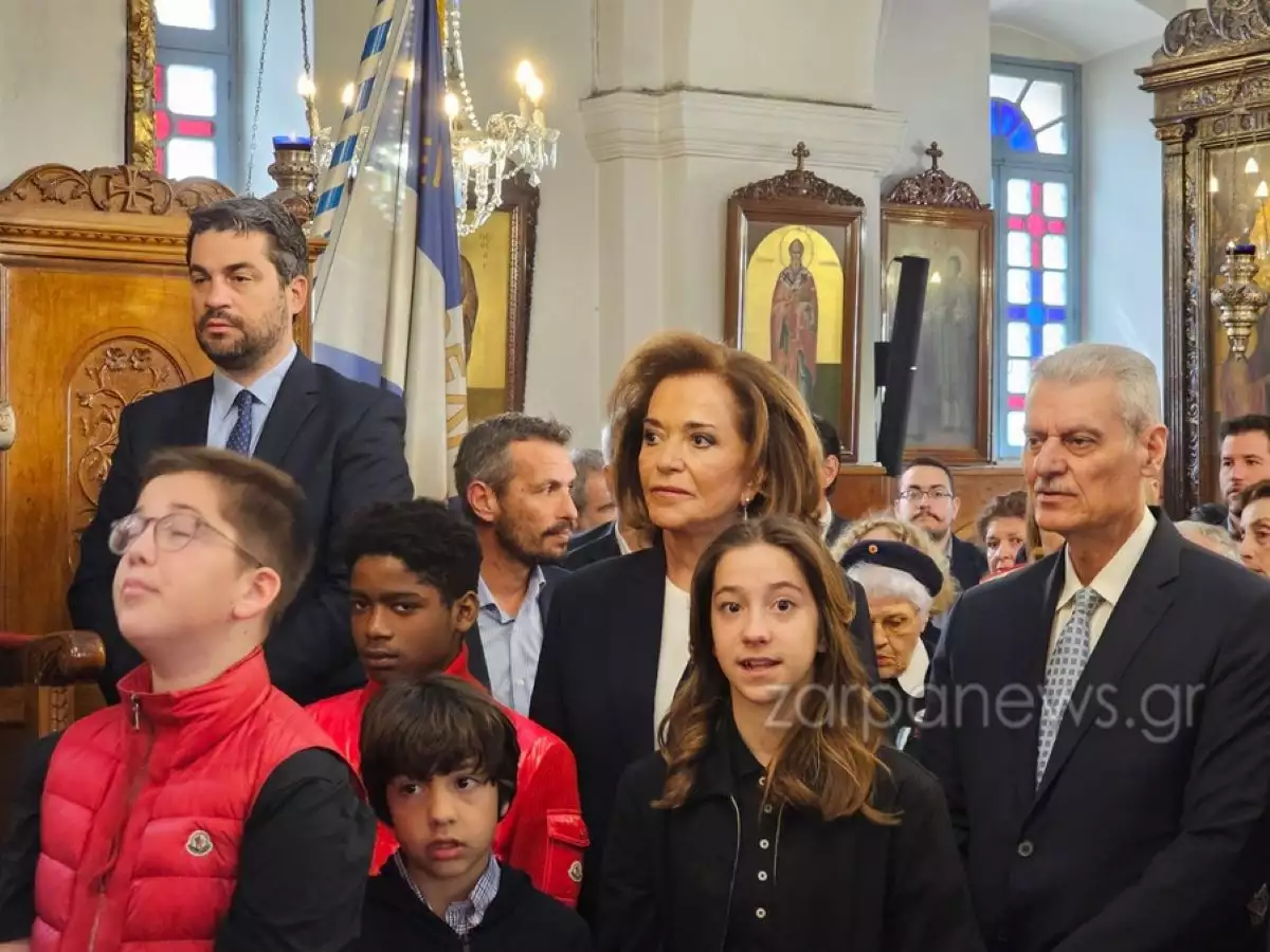 Όπως φαίνεται στις φωτογραφίες που δημοσιεύει το zarpanews.gr, η Ντόρα Μπακογιάννη συνοδευόταν από τα εγγόνια της με τα οποία παρακολούθησαν τη δοξολογία.