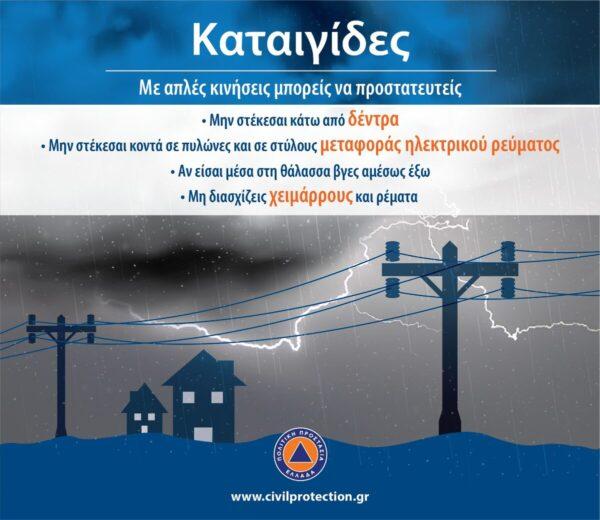 Παράλληλα, η γενική γραμματεία Πολιτικής Προστασίας συνιστά στους πολίτες να είναι ιδιαίτερα προσεκτικοί, μεριμνώντας για τη λήψη μέτρων αυτοπροστασίας από κινδύνους που προέρχονται από την εκδήλωση των έντονων καιρικών φαινομένων.