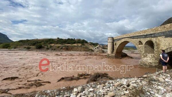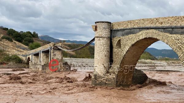 Θύμα της κακοκαιρίας και ένα μνημείο πολιτισμού, η ιστορική λίθινη τοξωτή γέφυρα της Σαρακίνας στον Πηνειό ποταμό, η οποία κατέρρευσε.