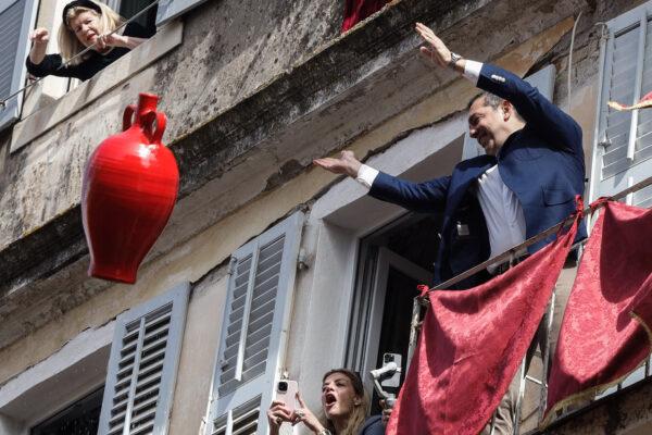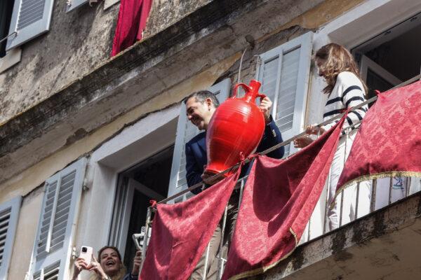 Στην Κέρκυρα βρέθηκε και ο αρχηγός της αξιωματικής αντιπολίτευσης, Αλέξης Τσίπρας, ο οποίος μαζί με την Μπέττυ Μπαζιάνα πέταξε τον δικό του μπότη από μπαλκόνι στο Λιστόν.