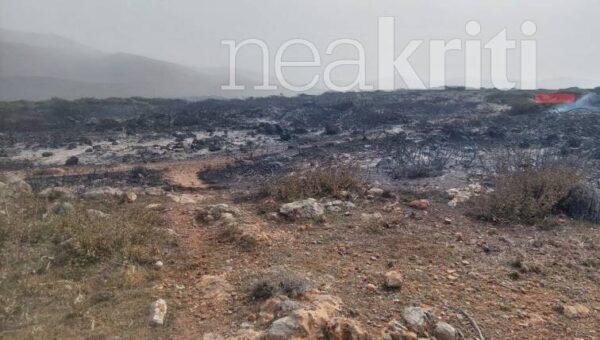 Όπως αναφέρει το neakriti.gr από την πυρκαγιά έχουν καεί τουλάχιστον 30 στρέμματα χορτολιβαδικής έκτασης και στο σημείο παραμένουν ισχυρές πυροσβεστικές δυνάμεις.