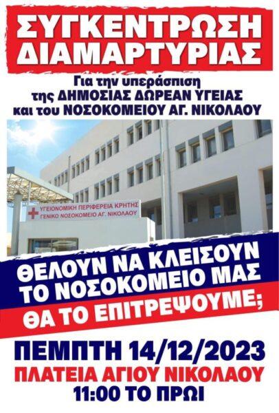 Κινητοποίηση με τη συμμετοχή του Εργατικού Κέντρου, του Δήμου αλλά και όλων των φορέων της πόλης, θα πραγματοποιηθεί στις 14 Δεκεμβρίου. Την στήριξη τους στην προσπάθεια των υγειονομικών να κρατήσουν το νοσοκομείο του Αγίου Νικολάου ανοιχτό εξέφρασαν στην ΕΡΤ, ξενοδόχοι του Αγίου Νικολάου κάνοντας λόγο για πλήγμα στην αναπτυξιακή πορεία της περιοχής μάλιστα την ώρα που ξεκινά στα Πλευρά η μεγαλύτερη ιδιωτική επένδυση στη χώρα μας.