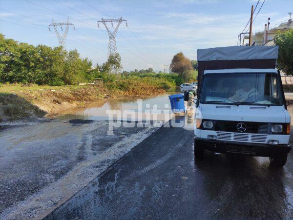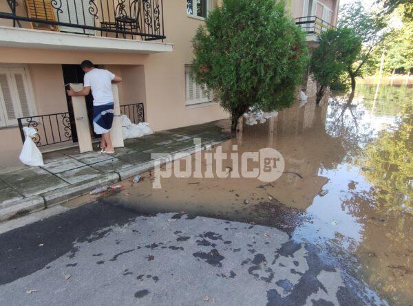 Συνεργεία του Δήμου Λαρισαίων κατά τη διάρκεια της νύχτας, σε συνεργασία με εθελοντές παρέδιδαν σακιά με άμμο, ωστόσο η στάθμη του νερού στα στενά ανέβαινε διαρκώς, μπαίνοντας μέσα στα σπίτια.