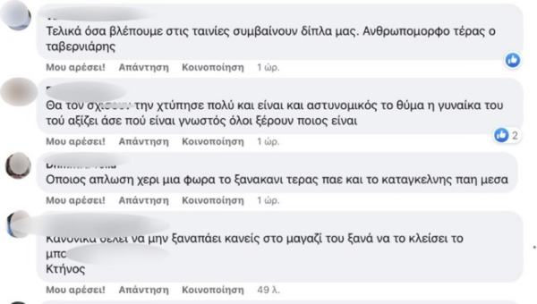 Σύμφωνα με το onlarissa.gr οι κάτοικοι της Λάρισας έχουν ξεσπάσει στα social media και οργισμένοι ζητούν να μην πάει ποτέ ξανά κανένας στο εστιατόριο που διατηρεί ο 52χρονος, το οποίο προς το παρόν είναι κλειστό.