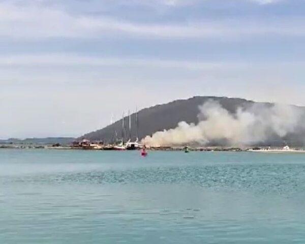 Φωτιά ξέσπασε στο καρνάγιο του Αντώνη, στη Λευκάδα. Οι φλόγες ξεκίνησαν από κάτι παλιά ξύλα και στη συνέχεια επεκτάθηκαν και στην πλώρη ενός παρατημένου παλιού καραβιού.