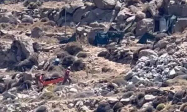 Άνδρες της πυροσβεστικής υπηρεσίας Μυκόνου παρέλαβαν το πτώμα στο οποίο θα γίνει νεκροψία – νεκροτομή για να εξακριβωθούν οι συνθήκες και τα αίτια θανάτου του άνδρα.