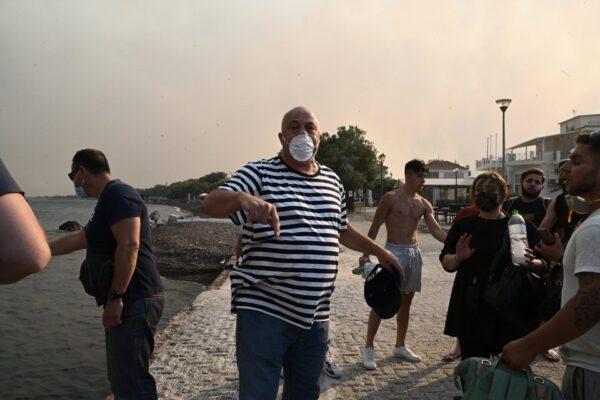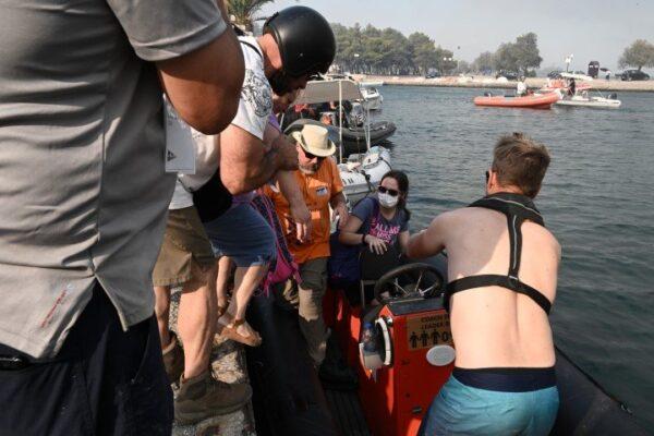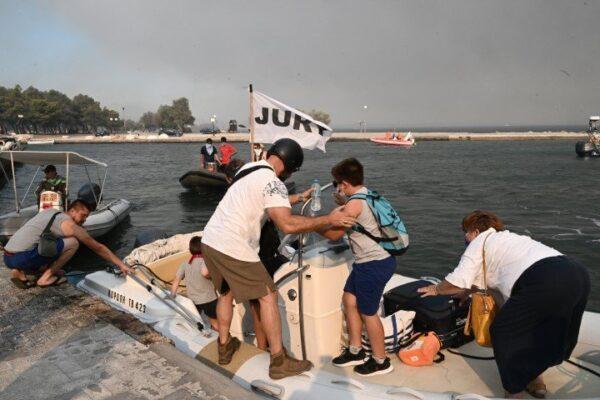 Tο Κεντρικό Λιμεναρχείο Βόλου με σκάφη της Ελληνικής Ομάδας Διάσωσης αλλά και ιδιωτικών βοηθά τους κατοίκους που δεν έχουν καταφέρει να εγκαταλείψουν την περιοχή λόγω της πυρκαγιάς, να τους βοηθήσουν να απομακρυνθούν με βάρκες από το σημείο.
