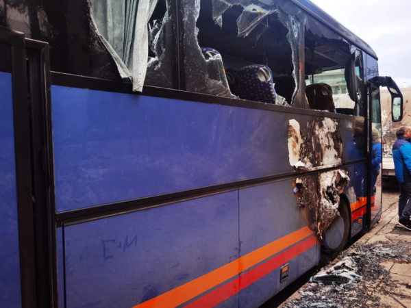 Ένα ΙΧ, δύο επαγγελματικά βαν και ένα τουριστικό λεωφορείο τυλίχθηκαν στις φλόγες ενώ στο σημείο έσπευσαν 5 οχήματα της Πυροσβεστικής με 15 Πυροσβέστες που έσβησαν τις φωτιές.