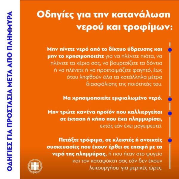 «Σε συνέχεια των ενημερώσεων από τις πληγείσες περιοχές θα θέλαμε σήμερα να πληροφορήσουμε τους πολίτες για πολύ σημαντικά ζητήματα που αφορούν την προστασία τους σε σχέση με ενδεχόμενους κινδύνους για τη δημόσια υγεία.
