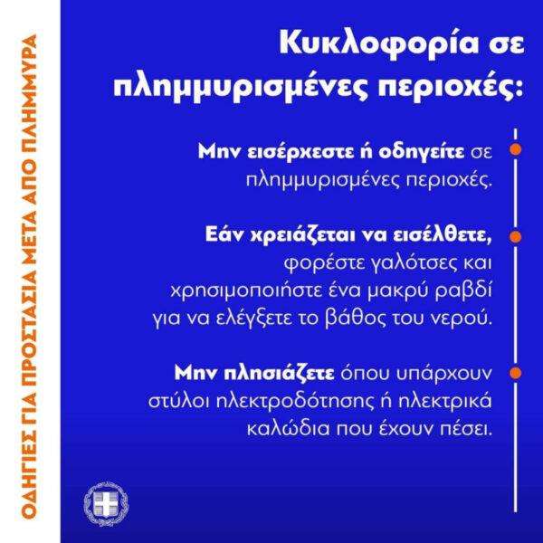 Για την κυκλοφορία σε περιοχές που επλήγησαν από τις πλημμύρες: