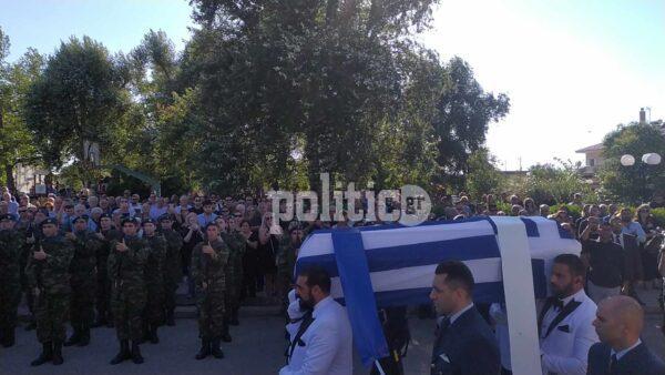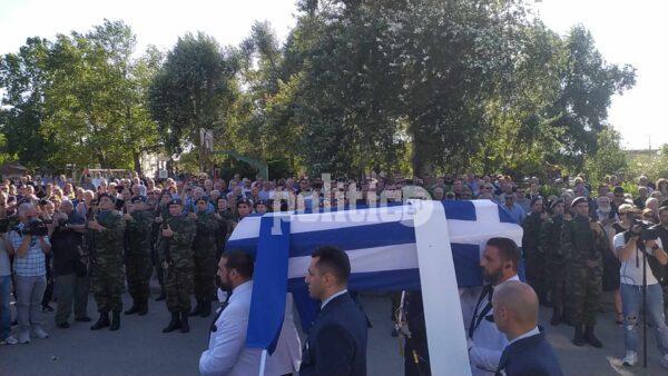 Μέσα σε κλίμα βαθιάς συγκίνησης σύσσωμη η πολιτική και στρατιωτική ηγεσία αλλά και συγγενείς και φίλοι, συνοδεύουν αυτήν την ώρα τον 27χρονο στην τελευταία του κατοικία.