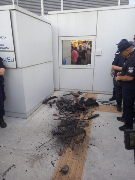 Συγκεκριμένα, έριξαν ένα ελάχιστο δείγμα από τις στάχτες που προήλθαν από τις μαζικές πυρκαγιές στην Αττική, στην είσοδο του υπουργείου Κλιματικής Κρίσης και Πολιτικής Προστασίας.