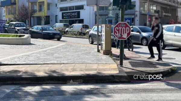 Το περιστατικό αυτό, κατέγραψε ο φωτογραφικός φακός του cretapost, σε κεντρική διασταύρωση της πόλης και συγκεκριμένα στην συμβολή των οδών Παπανδρέου – Μίνωος.
