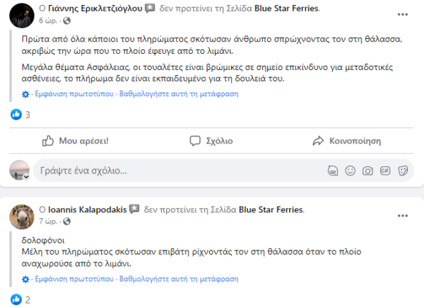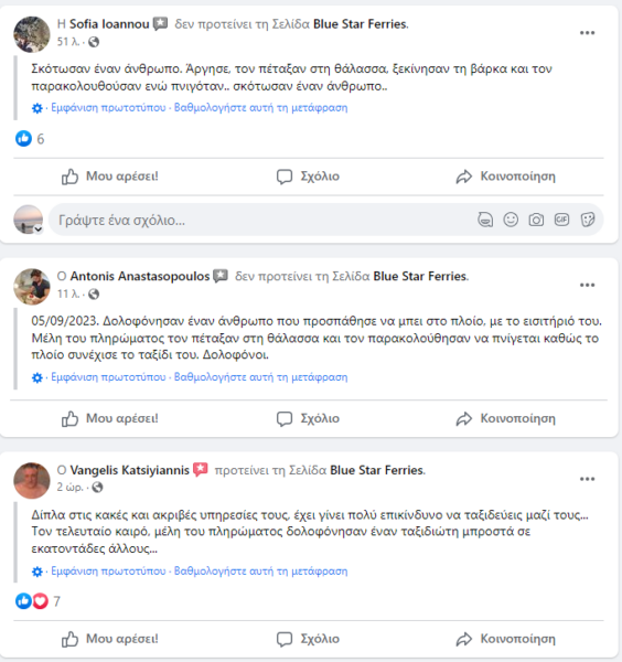 Συγκεκριμένα στις κριτικές σε σελίδα κοινωνικής δικτύωσης φιγουράρει μόνο μια λέξη «ΔΟΛΟΦΟΝΟΙ», καλώντας τον κόσμο να μην αγοράσει εισιτήρια από την εταιρεία.