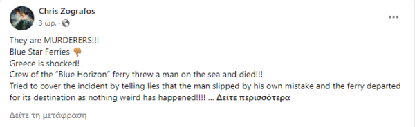 Δείτε επίσης: Πειραιάς – Blue Horizon: Στο «φως» νέο βίντεο από τη δολοφονία του Αντώνη – Σοκαρισμένοι οι επιβάτες άλλου πλοίου