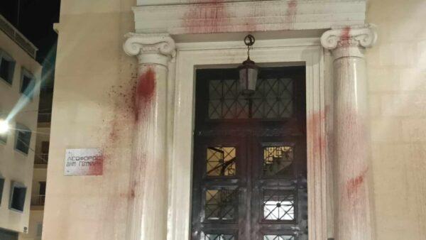 Οι διαδηλωτές κρατούσαν πανό και φώναζαν συνθήματα. ενώ έβαψαν με κόκκινη μπογιά τμήμα της πρόσοψης του Δικαστικού Μεγάρου Πατρών.