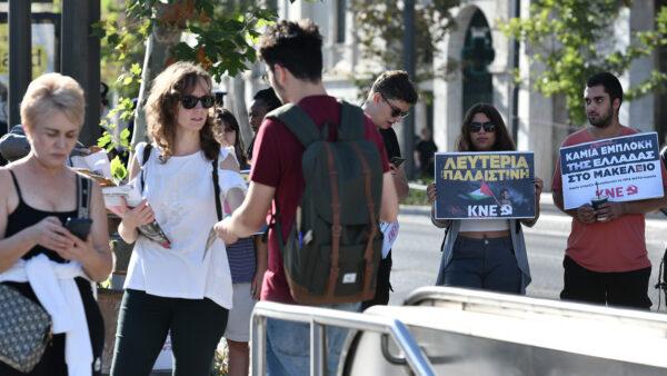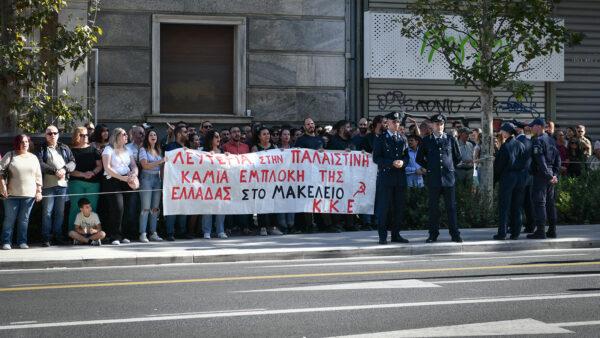 Μέλη του ΚΚΕ και της ΚΝΕ πραγματοποίησαν μαζική παρέμβαση κατά τη διάρκεια της παρέλασης στην Αθήνα, φέροντας πανό με το σύνθημα “Λευτεριά στην Παλαιστίνη. Καμία εμπλοκή της Ελλάδας στο μακελειό.”