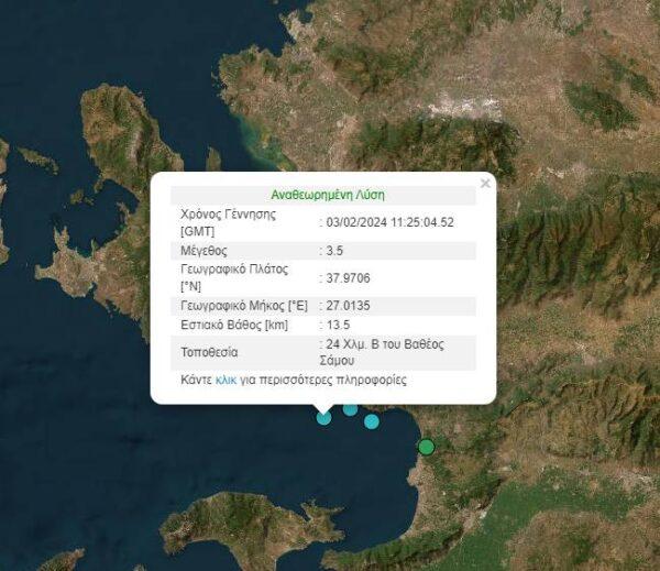 Σεισμική δόνηση μεγέθους 3,5 ρίχτερ ταρακούνησε τους κατοίκους της Σάμου το μεσημέρι του Σαββάτου 3 Φεβρουαρίου
