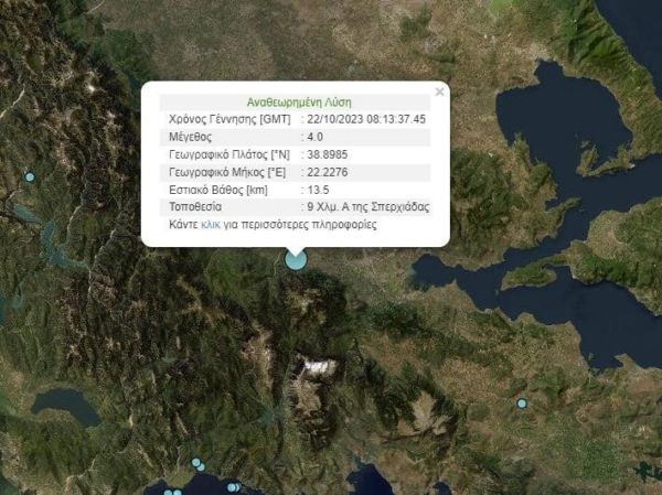 Το Γεωδυναμικό Ινστιτούτο αναφέρει ότι το επίκεντρο εντοπίζεται στα 9 χιλιόμετρα ανατολικά της Σπερχιάδας και το εστιακό του βάθος εντοπίζεται στα 13,5 χιλιόμετρα.