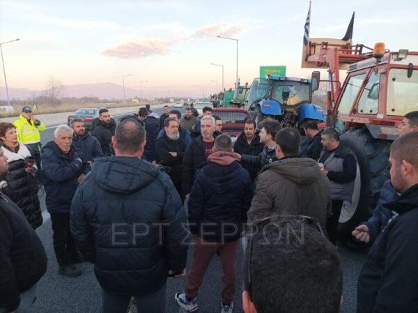 Η απόφαση για το συμβολικό κλείσιμο της Εγνατίας Οδού πάρθηκε μετά την επιστροφή των Σερραίων αγροτών από τη Θεσσαλονίκη και αφού υπήρξε ενημέρωση τους από τον πρόεδρο του Πανσερραϊκού Αγροτικού Συλλόγου Διαμαντή Διαμαντόπουλο και τον Αντιπρόεδρο Γιάννη Παναγή και σύσκεψη παρουσία του Αστυνομικού Διευθυντή της Διεύθυνσης Αστυνομίας Σερρών ταξίαρχο Ευάγγελο Τσιώτα. Το μπλόκο των Σερραίων αγροτών είναι το μοναδικό πάνω στην Εγνατία κι έπρεπε να υπάρξει μια συνεννόηση με την Αστυνομία για την αποφυγή τροχαίου ατυχήματος