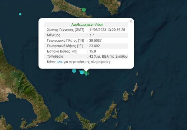 Ειδικότερα σύμφωνα με το Γεωδυναμικό Ινστιτούτο στις 16:20 σημειώθηκε δόνηση 3,7 βαθμών Ρίχτερ σε εστιακό βάθος 15,9 χιλιομέτρων 42χλμ ΒΒΑ της Σκιάθου και στις 16:27 δόνηση 2,4 βαθμών σε βάθος 5 χιλιομέτρων.