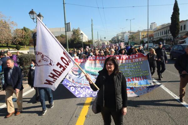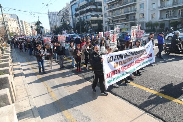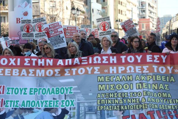 Γιατροί και νοσηλευτές πραγματοποιούν πορεία στο κέντρο της Αθήνας.