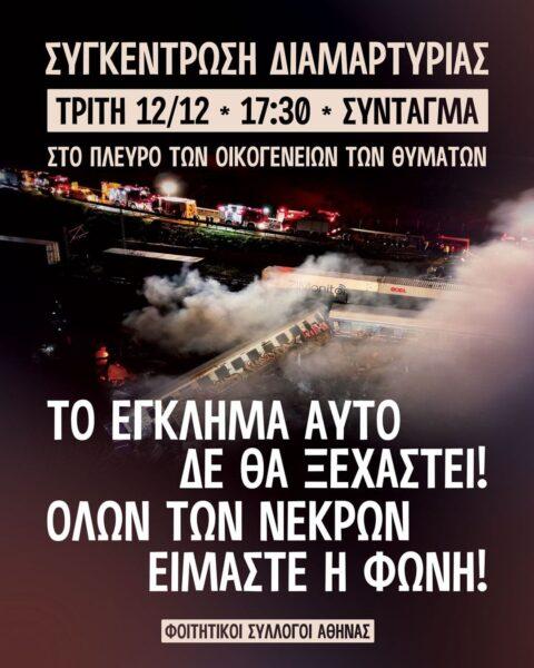 Δείτε επίσης; Τέμπη: Συγκέντρωση διαμαρτυρίας έξω από τη Βουλή την Τρίτη 12 Δεκεμβρίου