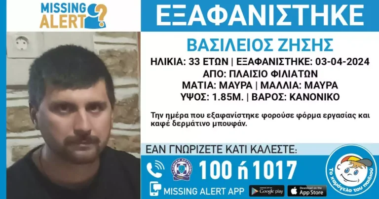 Θεσπρωτία: Εξαφάνιση 33χρονου από το χωριό Πλαίσιο Φιλιατών