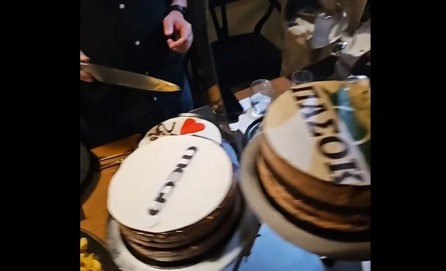 Ο Δημήτρης Καπούνης, καλός φίλος του ζευγαριού ετοίμασε ένα γλέντι το οποίο είχε τρεις τούρτες μια τους νεόνυμφους, μια για το MEGA και μια ακόμη για το ΠΑΣΟΚ!