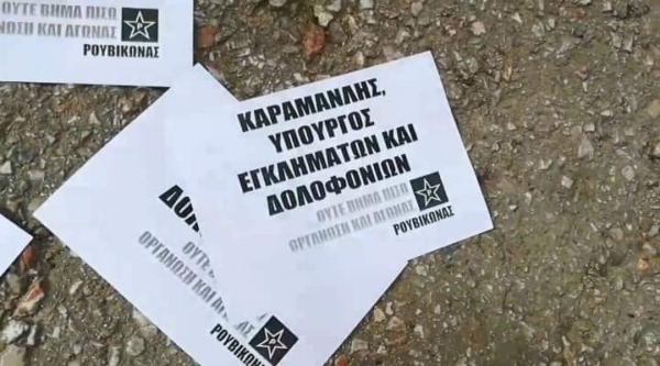 Μέλη του «Ρουβίκωνα» βρέθηκαν σήμερα έξω από το σπίτι του τέως υπουργού Υποδομών και Μεταφορών Κώστα Καραμανλή στην Πλάκα.
