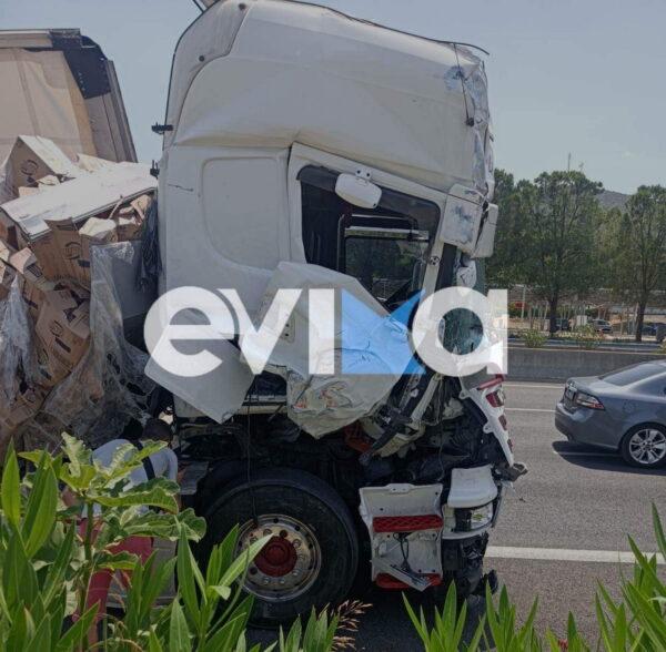 Σύμφωνα με το evima.gr, το τροχαίο με τις νταλίκες σημειώθηκε υπό άγνωστες συνθήκες. Τα δύο μεγάλα οχήματα μετέφεραν μπουκάλια με χλωρίνες, τα οποία σκορπίστηκαν πάνω στην άσφαλτο στην Εθνική Οδό Αθηνών – Λαμίας, ακριβώς κάτω από τη γέφυρα στο ύψος του ΣΕΑ Σείριου.