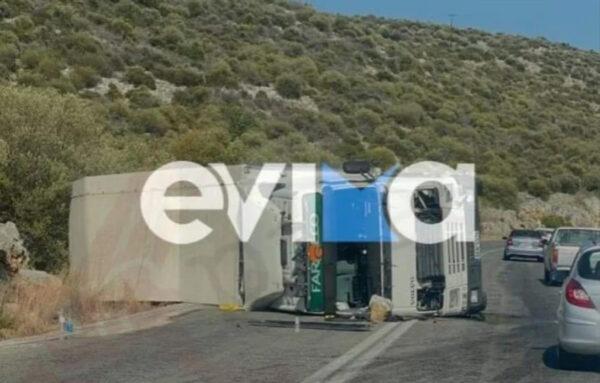 Στο τροχαίο ατύχημα τραυματίστηκε ο οδηγός της νταλίκας και μεταφέρθηκε με ασθενοφόρο του ΕΚΑΒ στο γενικό νοσοκομείο Χαλκίδας.