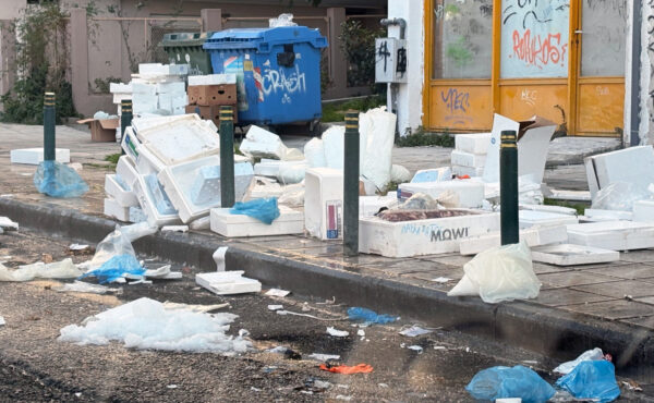 Ιχθυοπώλες απορρίπτουν και εγκαταλείπουν φελιζόλ, υπολείμματα ψαριών, πλαστικά, νερά και σκουπίδια στο οδόστρωμα και γύρω από τους κάδους, δημιουργώντας έντονη δυσοσμία, ρύπανση και θέτοντας σε κίνδυνο τη δημόσια υγεία