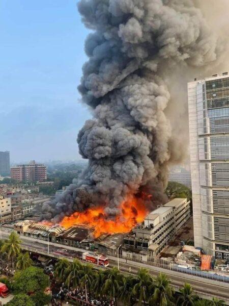 Εκατοντάδες πυροσβέστες από το Μπαγκλαντές κινητοποιήθηκαν την Τρίτη στην πρωτεύουσα Ντάκα για να αντιμετωπίσουν την κόλαση φωτιάς που μαίνεται σε μια δημοφιλή αγορά ρούχων.