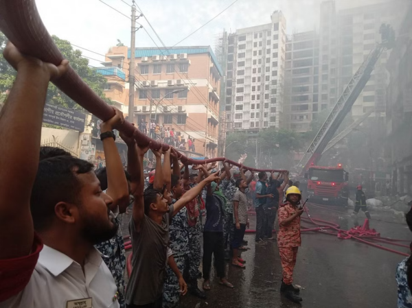 “Περίπου 600 πυροσβέστες εργάζονται για να θέσουν υπό έλεγχο τη φωτιά“, δήλωσε στο AFP ο εκπρόσωπος της πυροσβεστικής Rakibul Islam, προσθέτοντας ότι η πυρκαγιά ξεκίνησε τα ξημερώματα.