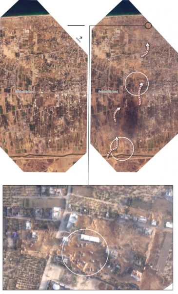 Όπως φαίνεται στις εικόνες υπάρχουν ίχνη οχημάτων σε όλη τη νότια πόλη της Γάζας, και μάλιστα για αρκετές μέρες.