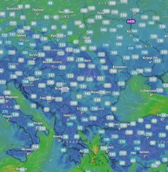 Δείτε τον χάρτη με τις σημερινές μετρήσεις:
