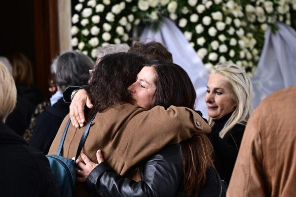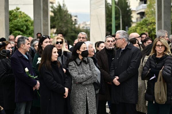 Μέσα σε κλίμα οδύνης συγγενείς και φίλοι αποχαιρετούν τον Γιώργο Μιχαλακόπουλο στο Α’ Νεκροταφείο Αθηνών.