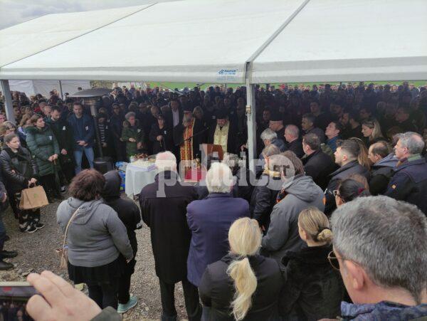 Πέραν των συγγενών, για λίγα λεπτά τοποθετήθηκε και ο π. Ευάγγελος Παπανικολάου, ο οποίος με δάκρυα στα μάτια ανέφερε ότι διαρκώς θα γίνονται βαφτίσεις παιδιών στην Αφρική, στα οποία θα δίνονται τα ονόματα των θυμάτων των Τεμπών. Ακολούθως, άπαντες φώναξαν “αθάνατοι” και απαίτησαν να τιμωρηθούν οι υπεύθυνοι που επέτρεπαν τη λειτουργία των τρένων, παρά τις τεράστιες ελλείψεις στους τομείς της ασφάλειας.