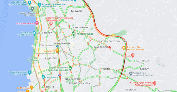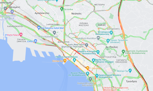 Αντίστοιχη είναι η κατάσταση και στο κέντρο της πόλης, με το μποτιλιάρισμα να εντοπίζεται σε αρκετά σημεία με βάση την εικόνα των χαρτών.