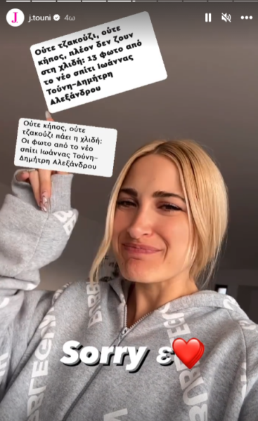 Αφορμή για το ξέσπασμά της ένα άρθρο που ανέφερε «Ούτε τζακούζι, ούτε κήπος, πλέον δεν ζουν στη χλιδή». Η Ιωάννα Τούνη θέλησε να απαντήσει στο δημοσίευμα μέσω των ίνσταγκραμ στόρις.