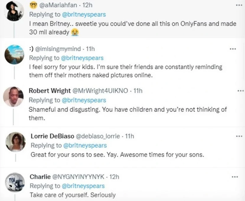 «Αν τις ανέβαζες στο Onlyfans, θα είχες 30 εκατομμύρια τώρα», έγραψε ένα άτομο και ένα άλλο άνεφερε: «Επιτέλους σταμάτα, είναι αηδιαστικό».
