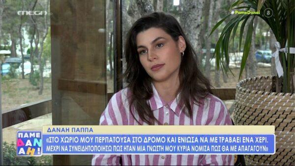 Η Δανάη Παππά είπε στη συνέχεια: «Στο χωριό μου κάποια στιγμή περπατούσα στο δρόμο και ένιωσα να με τραβάει ένα χέρι. Μέχρι να συνειδητοποιήσω πως ήταν μία γνωστή μου κυρία, νόμιζα πως θα με απαγάγουν!».