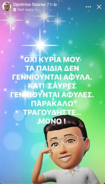 «Όχι, κυρία μου τα παιδιά δεν γεννιούνται άφυλα. Οι σαύρες γεννιούνται άφυλες. Παρακαλώ τραγουδήστε… Μόνο» έγραψε σε ανάρτησή του στα social media.