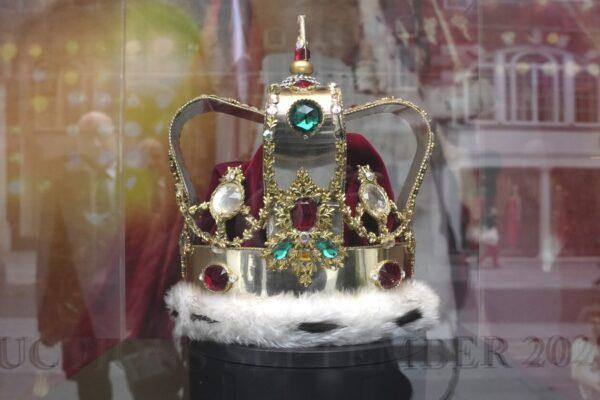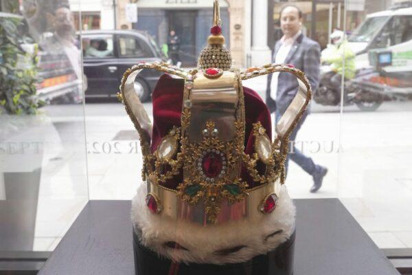 Μεταξύ των αντικειμένων είναι ένα στέμμα στο πρότυπο του στέμματος του Αγίου Εδουάρδου, το οποίο θα φορέσει ο βασιλιάς Κάρολος Γ’ του Ηνωμένου Βασιλείου στη στέψη του, το επόμενο Σαββατοκύριακο και ο συνοδευτικός μανδύας από κόκκινο βελούδο, ψεύτικη γούνα και στρας.
